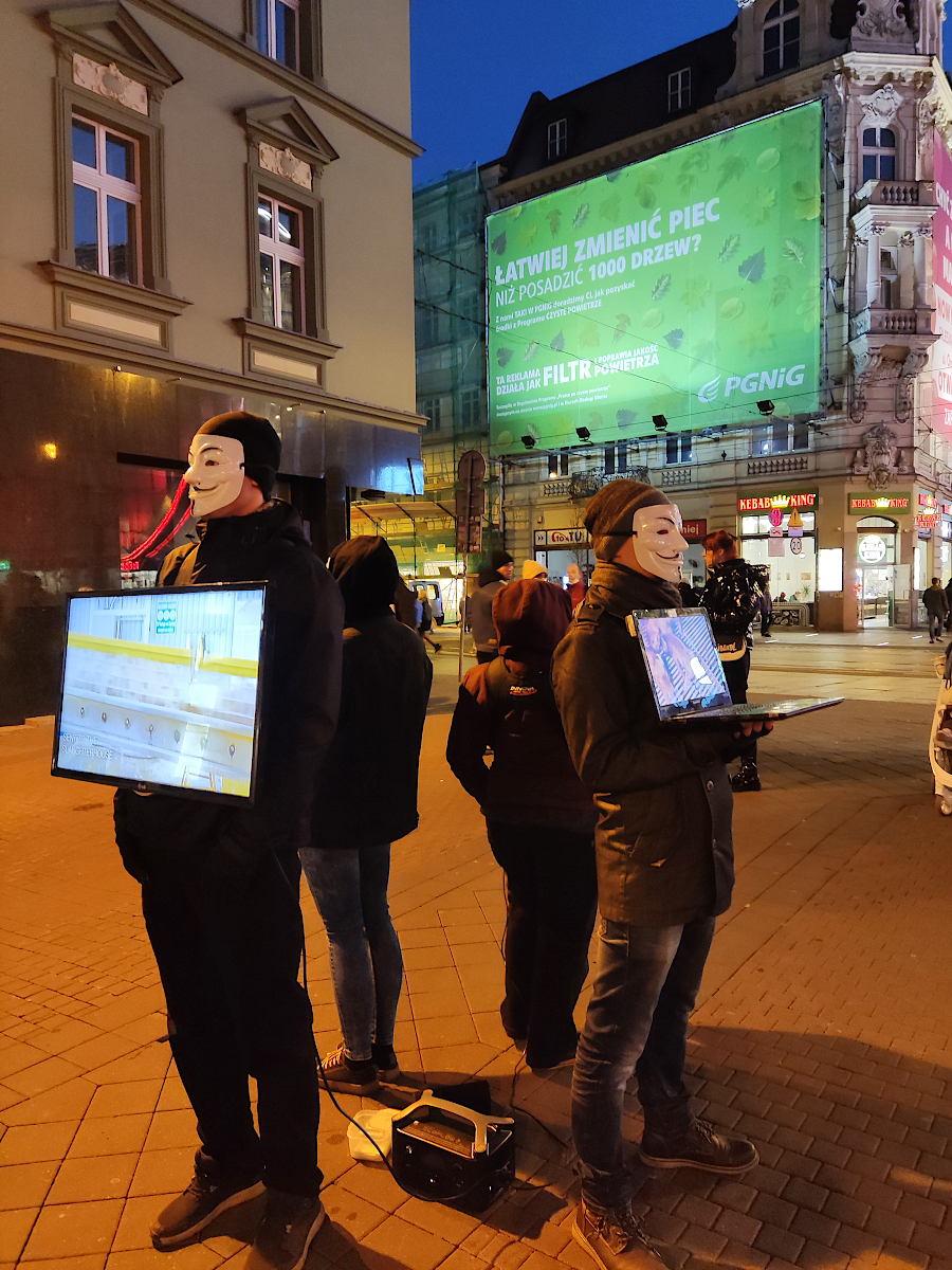 Jak są artyści to jest i sztuka ale w tym przypadku jakoś nie porywa do uczestnictwa nawet jako widz. Nie rozumiem też po co ta tandetna peruka i okulary, chyba aby się zamaskować przed widzem.