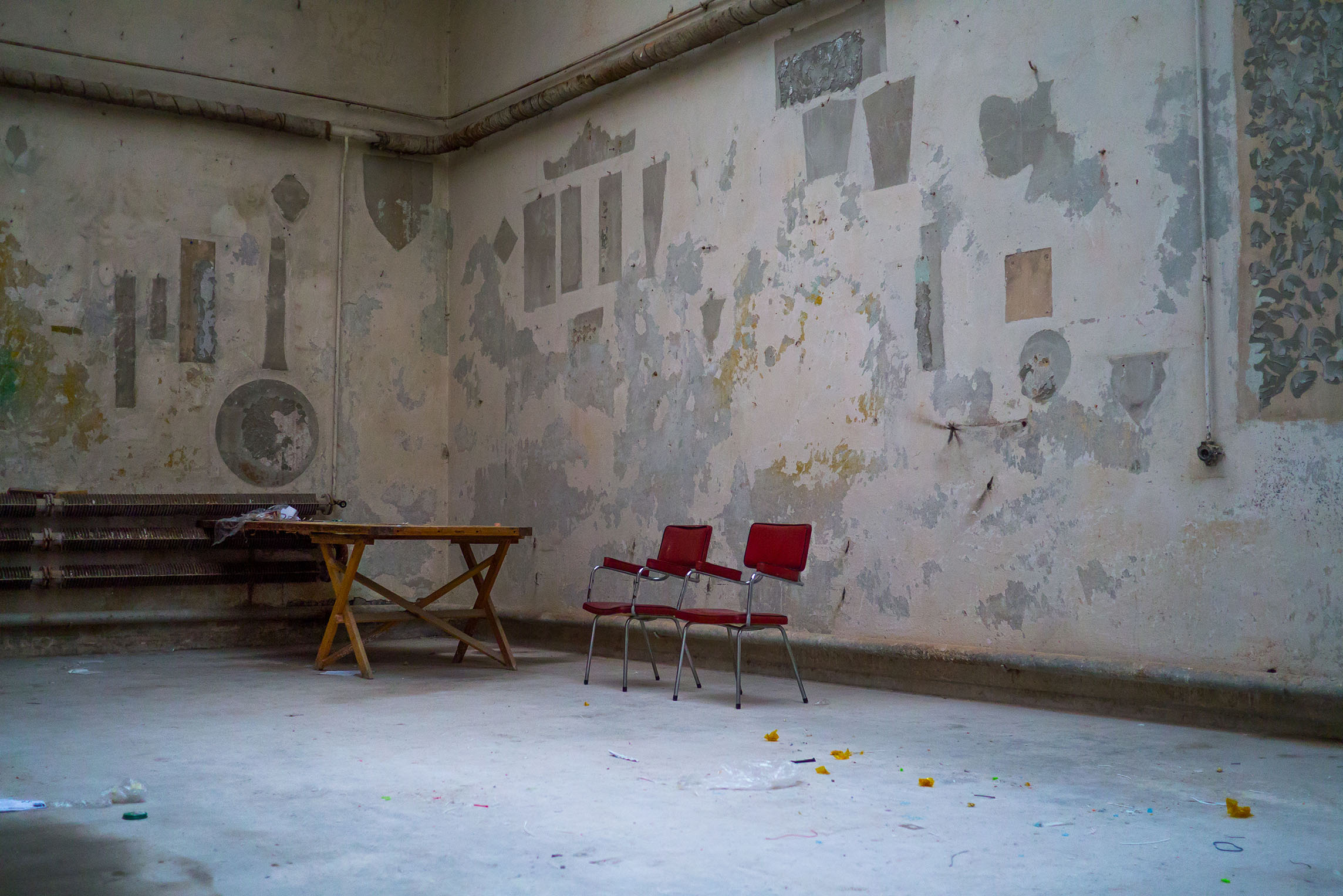 Miejscami niszczejące ściany kontrastowały z pozostawionymi dekoracjami