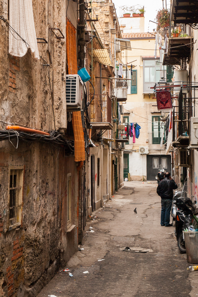 A więc do dzieła, centrum Palermo to piękna choć bardzo zaniedbana część miasta. Jak się okazało w centrum mieszka głównie biedota i emigranci! Bardzo mnie to zdziwiło bo centra miast przeważnie zamieszkują bogatsi, tutaj jest inaczej. Spacerując po wąskich i malowniczych uliczkach ma się wrażenie że budynki dookoła są bardzo zaniedbane i nie remontowane od długiego czasu.