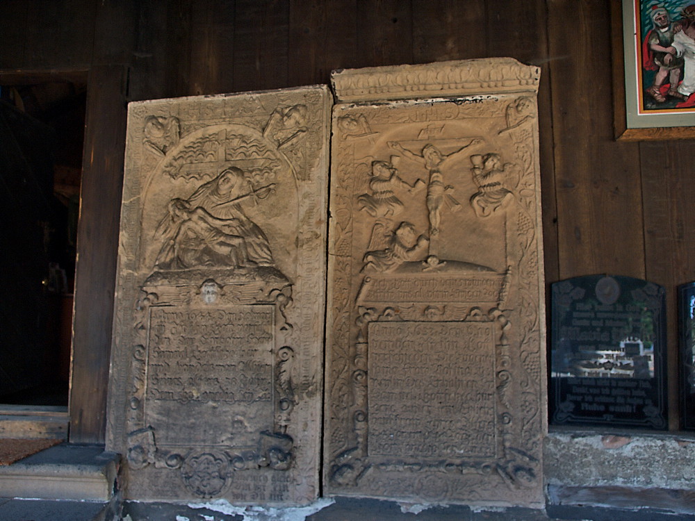 Jadąc ze Śląska, wybraliśmy drogę przez Kłodzko i zaraz za czeską granicą zatrzymaliśmy się na chwilkę w mieście Broumov. Ot, taka spontaniczna decyzja - drogowskaz na drewniany kościółek. Wg informacji jest to najstarszy drewniany kościół w Czechach. Położony jest na cmentarzu, na którym znajdziemy zarówno nowe jak i stare, a nawet bardzo stare nagrobki. Część z tych najstarszych i chyba najładniejszych znajduje się na krużganku wokół kościoła. Nie był to jednak cel naszego weekendowego wypadu, więc wsiedliśmy w auto i pojechaliśmy do Teplic nad Metują.
