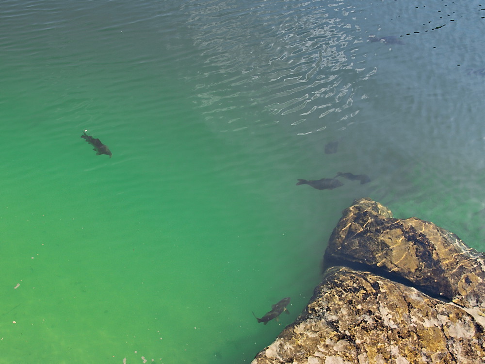 Skały Adrszpasko-Teplickie są częścią Narodowego Rezerwatu Przyrody i co za tym idzie musimy kupić bilet. Ciekawostka, kasy są czynne do 18-tej, a potem nikt specjalnie wejścia na teren Skał nie pilnuje, z czego turyści i autochtoni chętnie korzystają. Jednak o tym będzie później ;) Po wejściu wita nas zalany kamieniołom. Jezioro naprawdę fajne, a woda tak czysta, że nawet z kilkudziesięciu metrów stojąc na brzegu widać ryby pływające w wodzie. Przyznać trzeba, że są naprawdę okazałe.