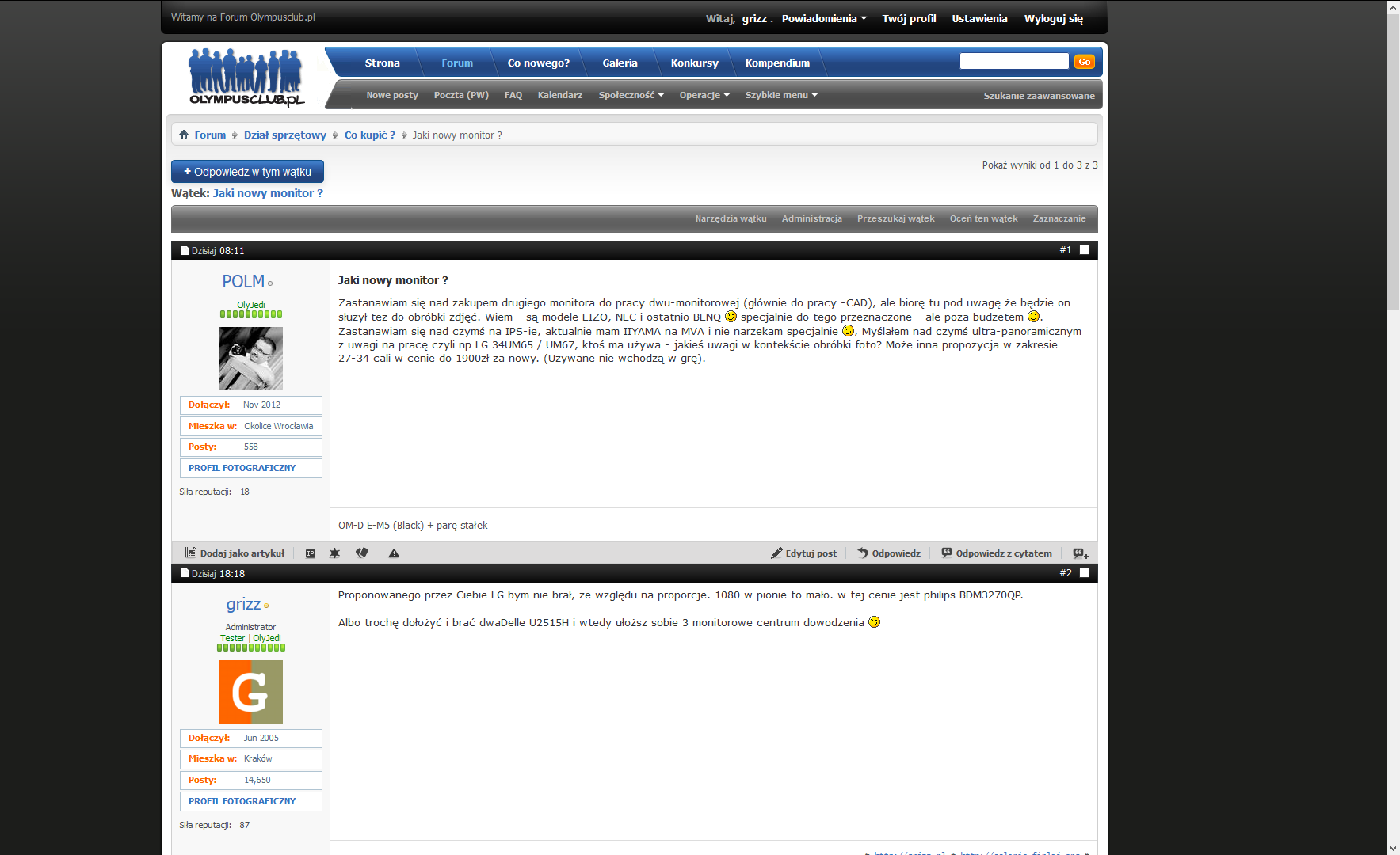 Zastanawiam się nad zakupem drugiego monitora do pracy dwu-monitorowej (głównie do pracy -CAD), ale biorę tu pod uwagę że będzie on służył też do obróbki zdjęć. Wiem - są modele EIZO, NEC i ostatnio BENQ ;-) specjalnie do tego przeznaczone - ale poza budżetem ;-). Zastanawiam się nad czymś na IPS-ie, aktualnie mam IIYAMA na MVA i nie narzekam specjalnie ;-), Myślałem nad czymś ultra-panoramicznym z uwagi na pracę czyli np LG 34UM65 / UM67, ktoś ma używa - jakieś uwagi w kontekście obróbki foto? Może inna propozycja w zakresie 27-34 cali w cenie do 1900zł za nowy. (Używane nie wchodzą w grę).