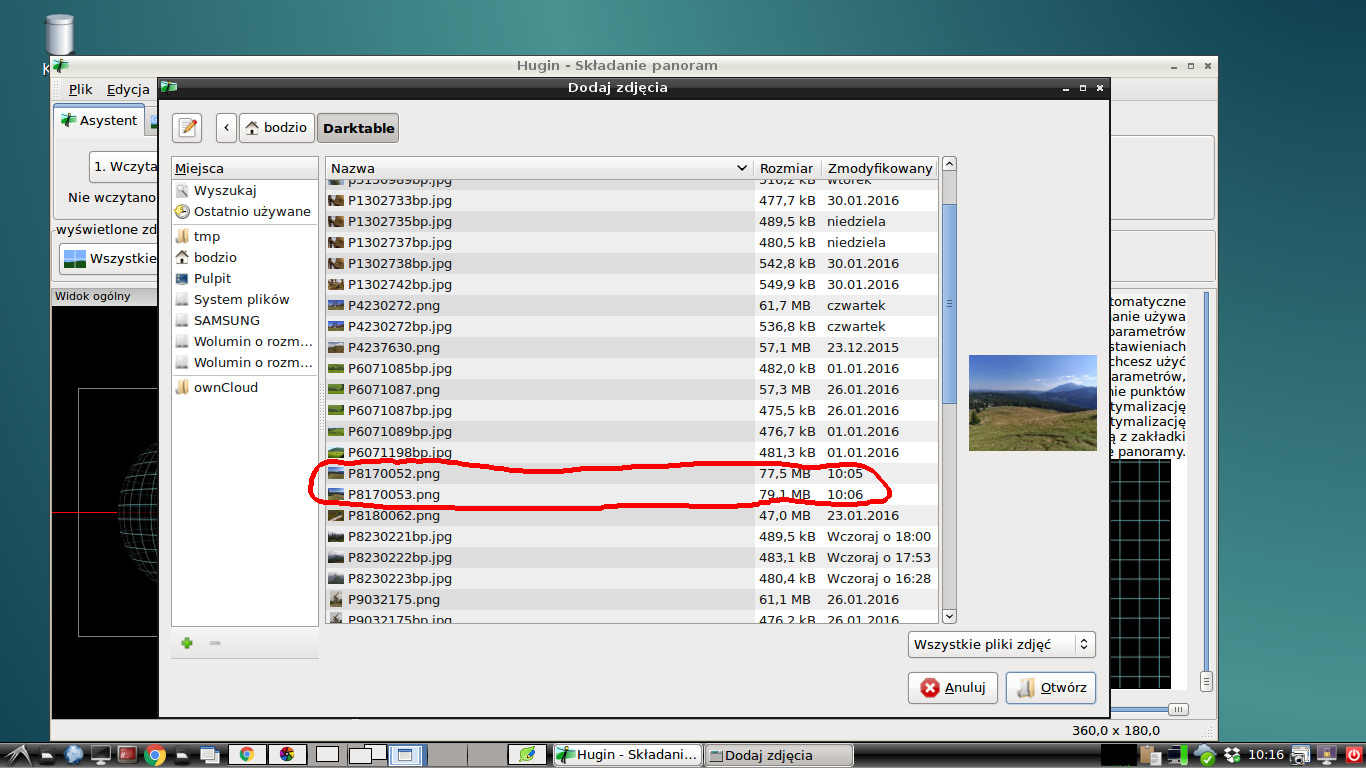 I to w pełnej rozdzielczości. Pliki TIF lub PNG. Oba formaty są bezstratne, oba są akceptowane przez Hugina. Te pliki ważą po 50 - 70 MB, więc sporo.