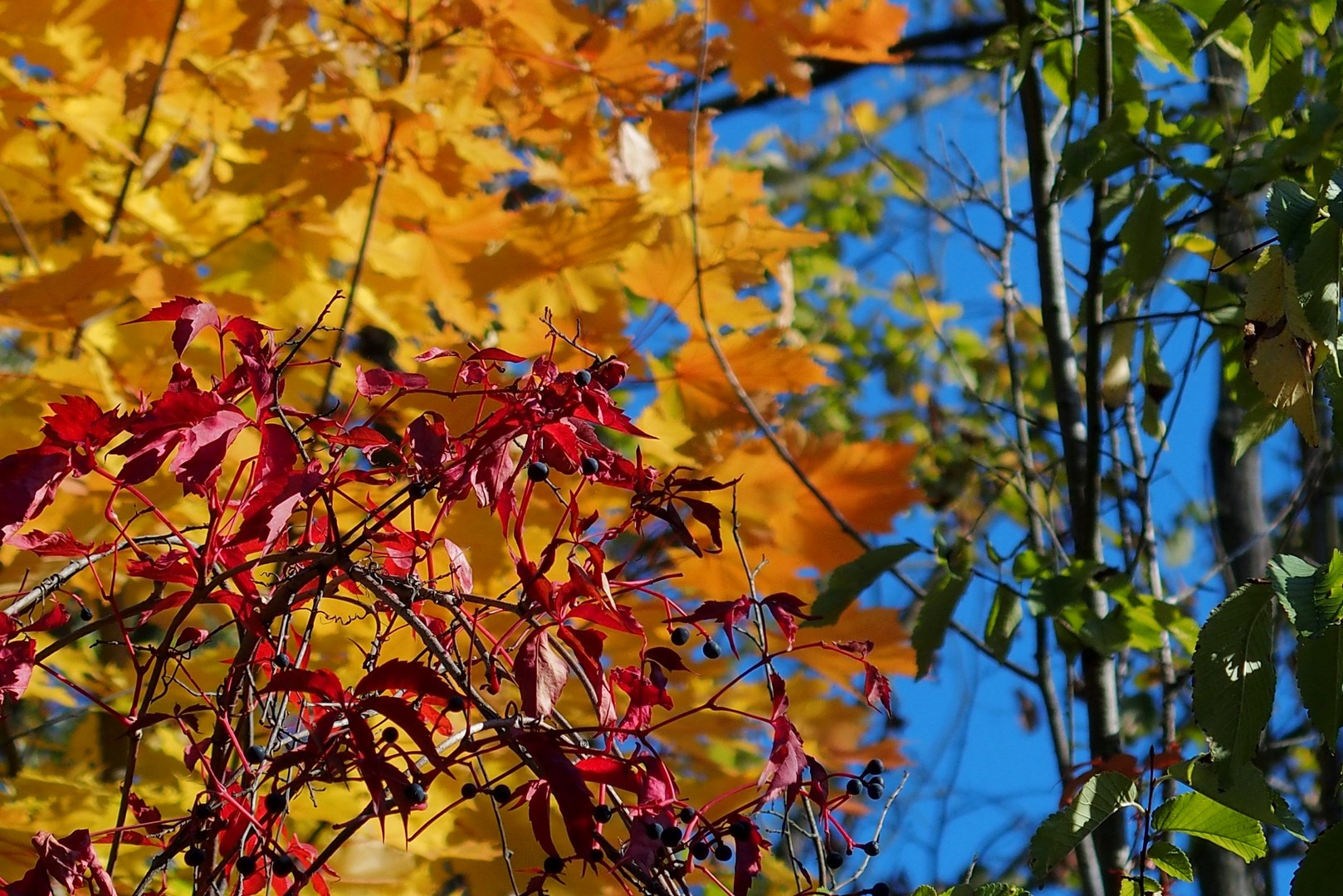 Poranek był dość ponury, niebo zasłonięte szarą szmatą i odechciało mi się. Muszę w tygodniu się wyrwać zanim liście pospadają.