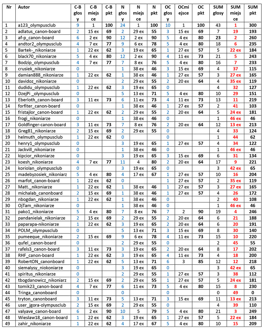 Po zakończeniu głosowania na forach pojawi się ogólne podsumowanie.