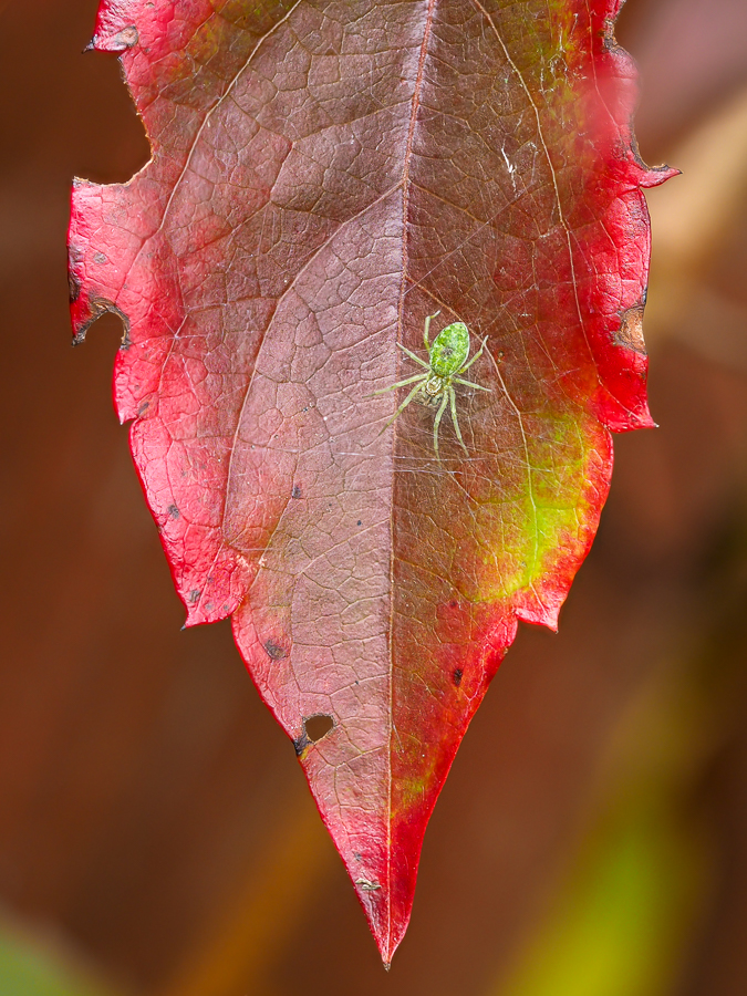 Czerwone listki ładnie ujęte, zakomponowane, jesiennym światłem się chwalą.