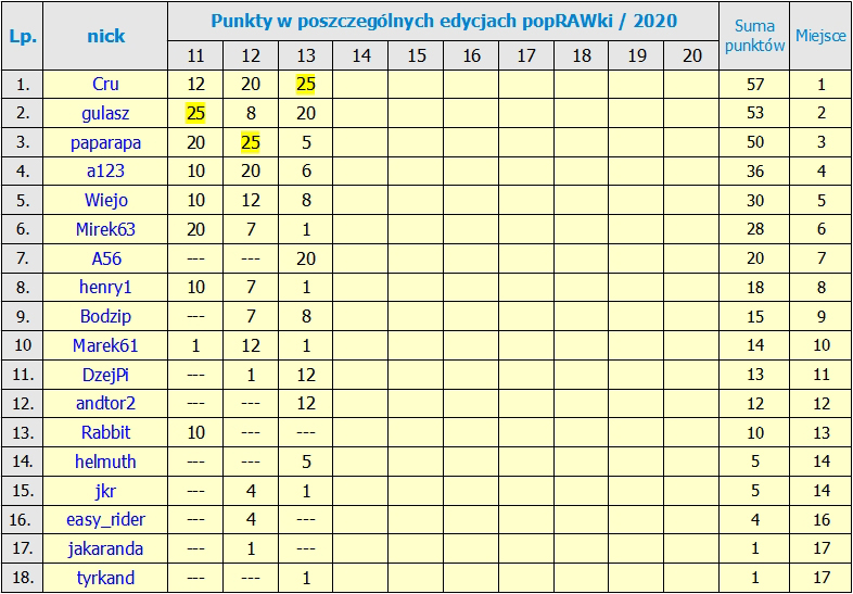 Witam i zapraszam do głosowania w Edycji 13/2020 popRAWki. Mamy w sumie 15 prac