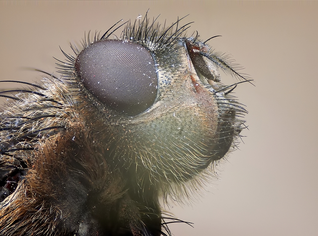 Jak to mówią, dżizas k... ja p... Próbowałem tego kiedyś, masakra, dałem sobie spokój (choć nadal korci). Stack i zestaw błyskaczy obowiązkowy. Że odwrotne mocowanie to się można domyślić ;) Podobne numery można robić z MSN-202 czy 505. Taki łeb pająka dało się wyciągnąć z Heliosem plus zestaw pierścieni plus DCR-250. Minusem całej zabawy jest foliowa (bo papier gruby się robi) DOF, do żywych raczej bez sensu. Z kompaktem plus MSN-505 udawało mi się robić zbliżenie pyska (otworu gębowego?) larwy stonki jak wcina liście, z lustrem trzeba by sporo przymknąć. Respect.