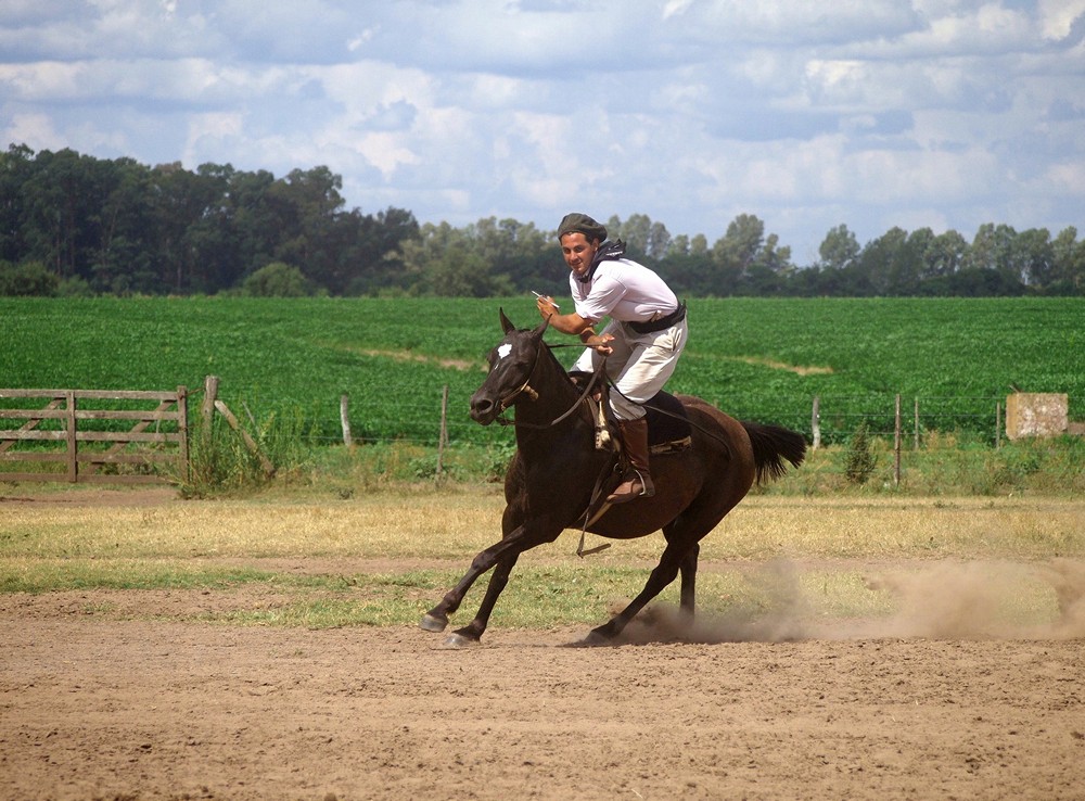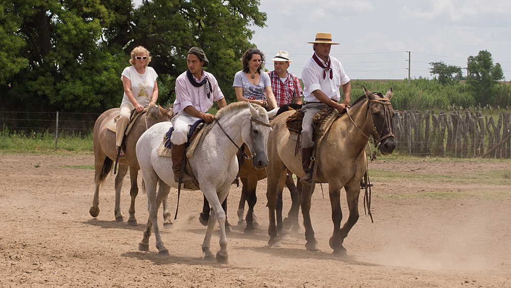 Argentyńscy kowboje - Gaucos, prowadzą hodowlę bydła na pampie. W haciendach bardzo chętnie przyjmują turystów, pokazując swoją pracę, częstując pysznym mięsiwem. Często uczą jeździć konno a mniej odważnych wożą bryczkami po posesji. Na swoim terenie mają dom, kaplicę oraz salę biesiadną.