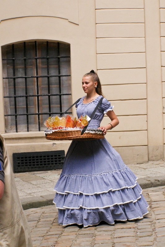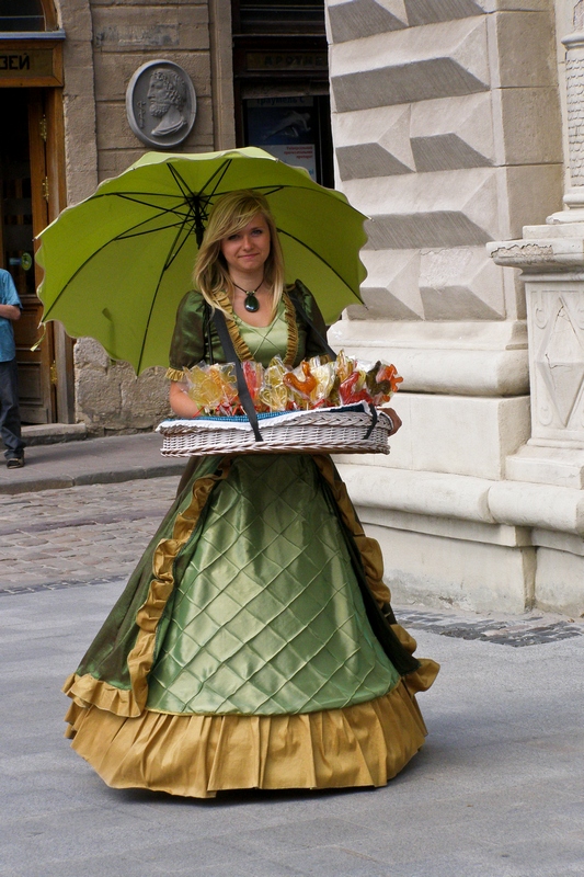 Panie sprzedające lizaki , mają ładne stroje.