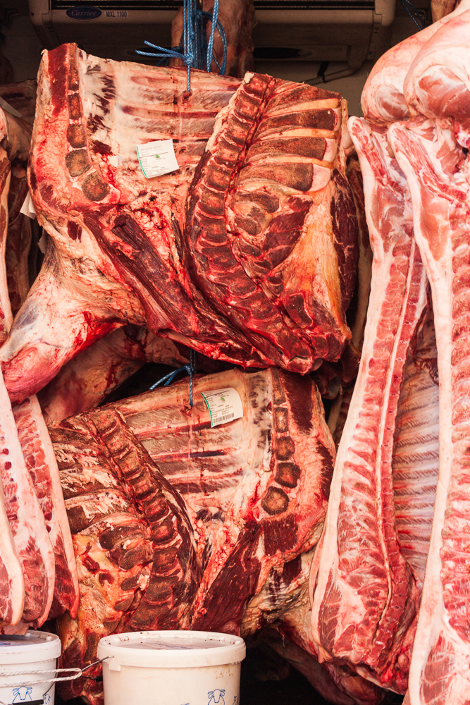 Pod wielkimi parasolami, lub namiotami oświetlone nawet w dzień stoiska czasem ładne i estetyczne, czasem jednak zbite z kilku desek lub powiązane sznurkiem z tylko jednym gatunkiem sprzedawanych owoców lub warzyw.