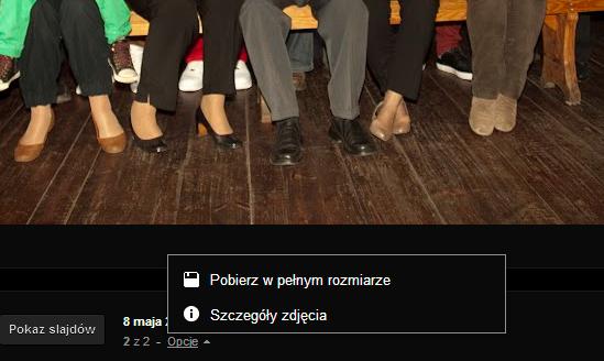 Klikam na fotkę, potem na dole strony klikam Opcje (2 z 2) i wybieram pobierz w pełnym rozmiarze