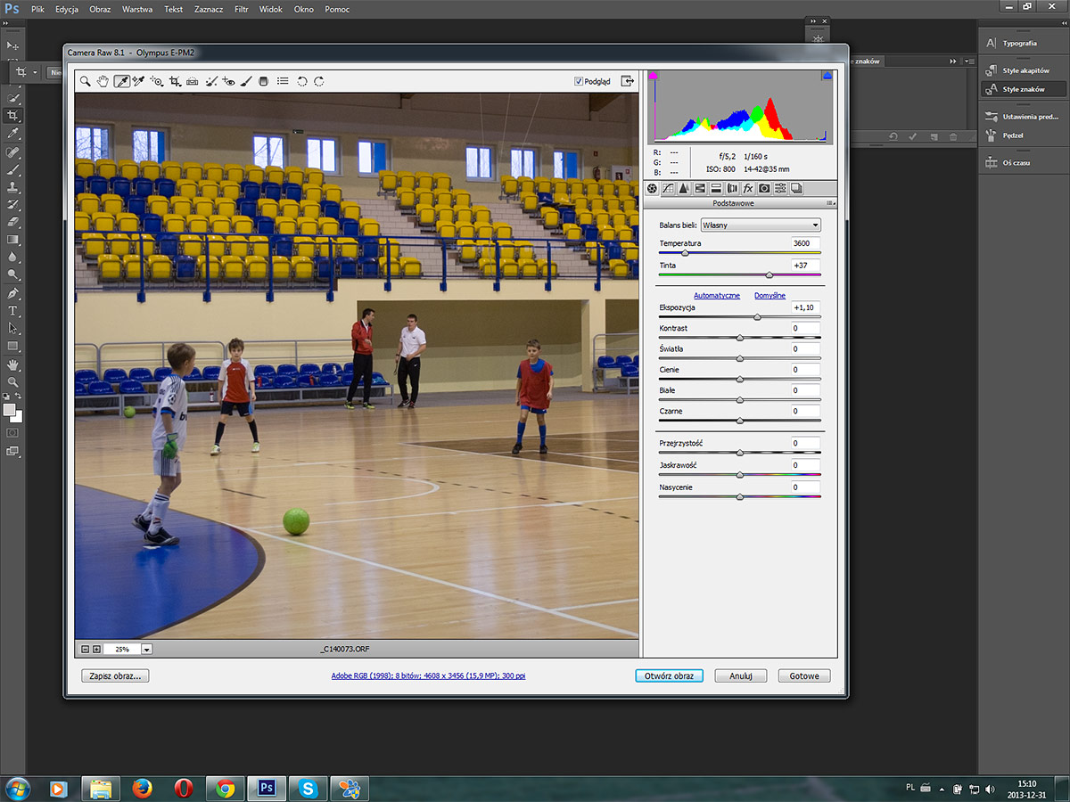 Wbrew temu co podpowiadał LR w RAW z E-520 ekspozycje podniosłem o +0,25EV w E-PM2 podniosłem o +1EV.