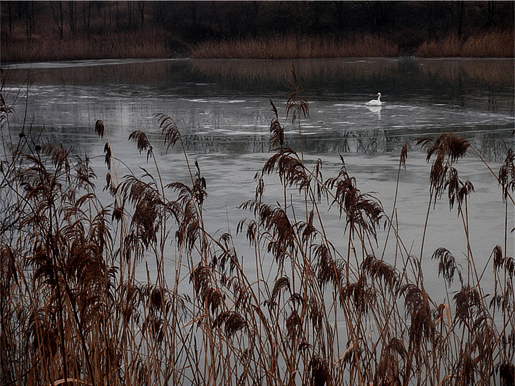 Wczoraj mgla i lod a dzisiaj roztopy i pierwsze labedzie.