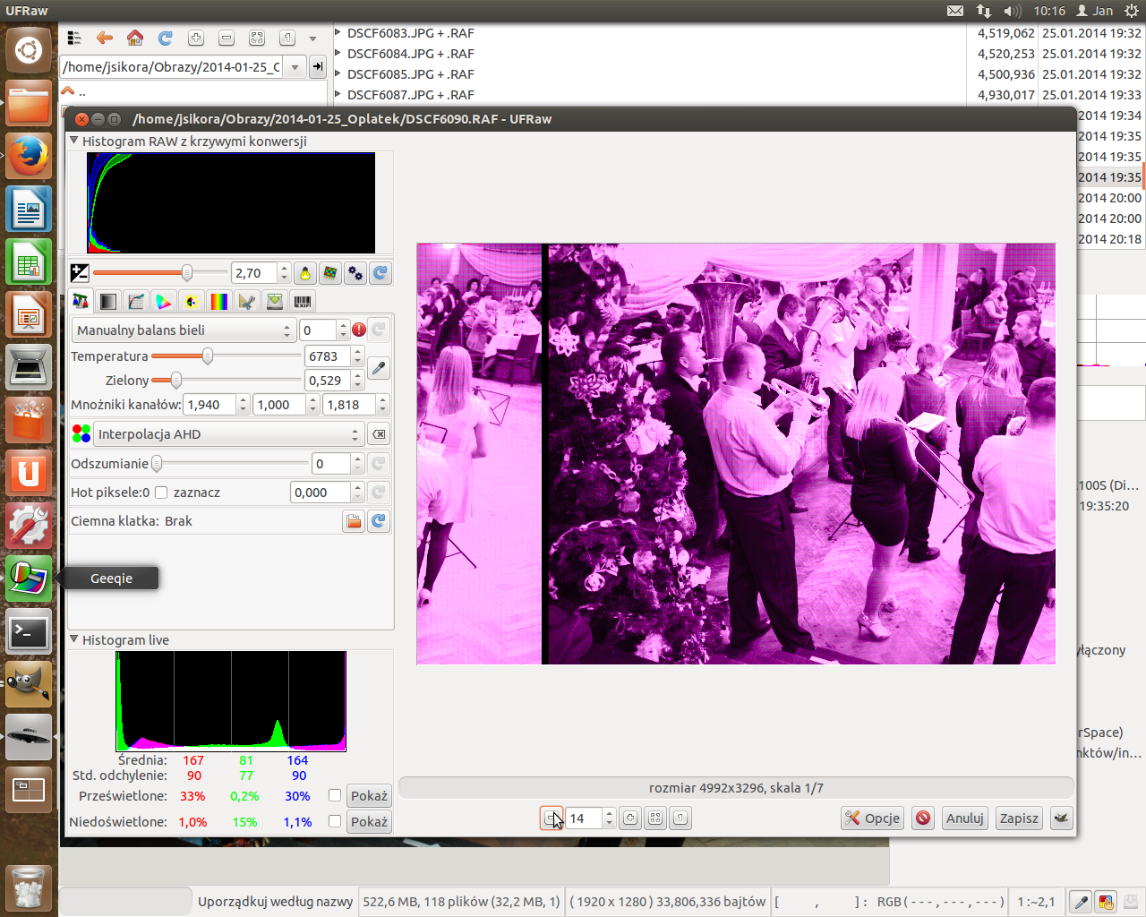 Z ciekawosci zrobilem konwersje foty z RAF na DNG a UfRaw otwiera mi mocno zazieleniony obraz .