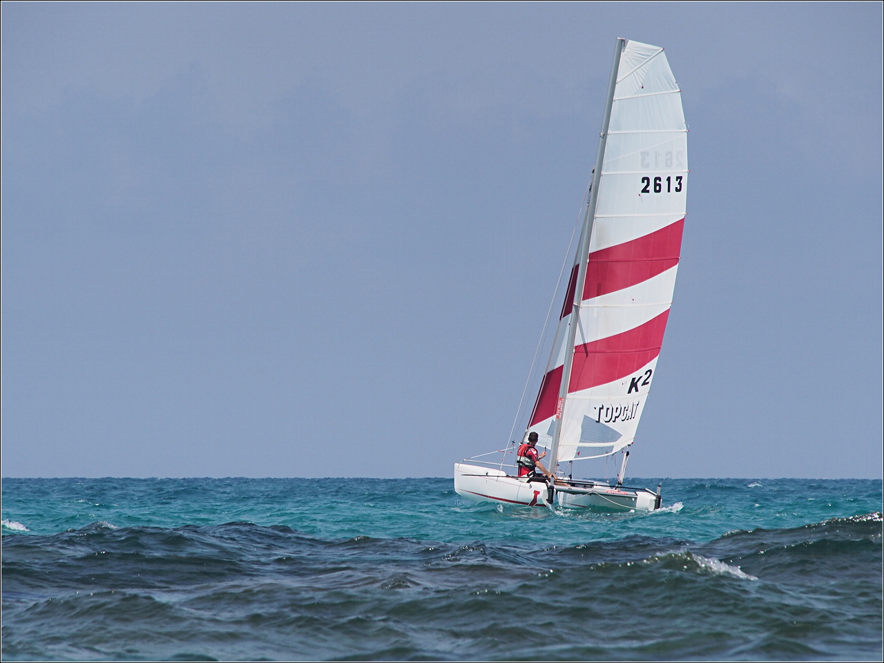 Mój sceptycyzm do megazoomów został przesłonięty argumentami natury praktycznej: jedno szkło zamiast co najmniej dwóch (14-42 + 40-150) z których żadne też przecież wybitne nie jest. Możliwości "zoomowania" pokazują dwa poniższe zdjęcia - zrobione z tego samego miejsca. Obróbka zamieszczonych zdjęć jest ograniczona do skalowania, lekkiego wyostrzania i dołożenia ramki. Jedynie pierwsze - to z katamaranem, było lekko prostowane i kadrowane. Zdjęcia są w rozdzielczości 1280 px na dłuższym boku - klikać po pełną wersję