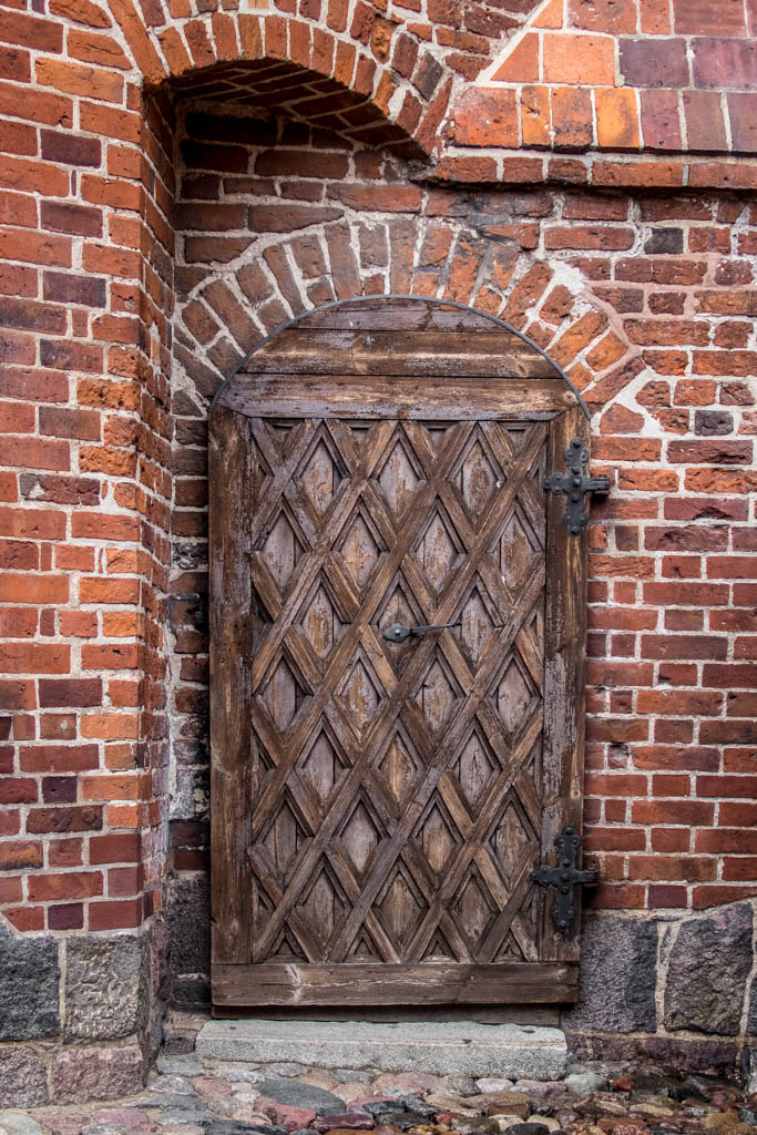 Będąc już na dziedzińcu stanąłem przed wyborem dalszej drogi zwiedzania i moją uwagę przyciągneły drzwi w na ścianie zachodniego skrzydła. Niby podobne, a jednak każde inne. Zawsze oglądając takie stare wejścia zastanawia mi jak powstały poszczególne wgniecenia, rysy i ubytki drewna. Niekiedy jak czas w danym miejscu na to pozwala wyobrażam sobie np. pijanego rycerza, który w nie walnął i zrobił wgniecenie zbroją, lub kuchcika który niosąc ciężkie naczynie z wodą uderza jego krawędzią zaznaczając swoją niezdarność kolejną rysą.