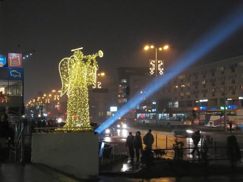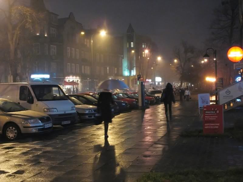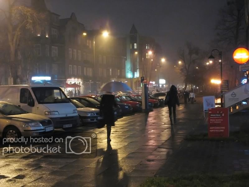 Dzieki temu udało mi się pokazać ulice, domy, a także nierozmytych przechodniów w ruchu, choć nieraz cokolwiek poruszonych. Nie używałem statywu, aby uniknąć nadmiernego poruszenia korzystałem z opierania aparatu lewym bokiem o wszelkie obiekty - słupki znaków drogowych, drzewa, słup podporowy wiaty peronowej, automat do biletów parkingowych, a nawet stojący autobus (miał zgaszony silnik). Fotki są do oglądania, nie do rankingu, ich wartość jest co najwyżej kronikarska - pokazują, jak wygląda miasto w listopadowych dniach 2007.