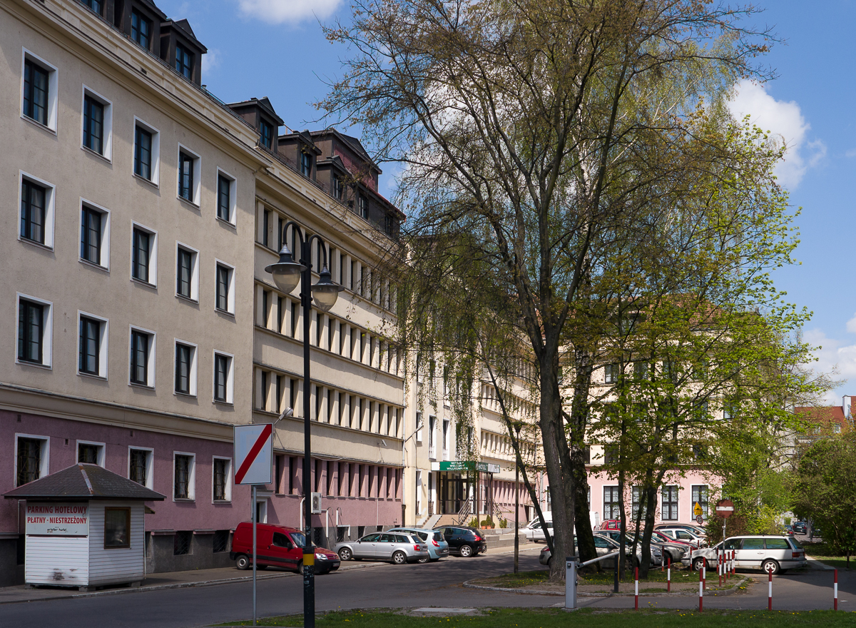 Powrócę po raz kolejny na Plac Słowiański i dawny Ratusz rozbudowany później o Prezydium Policji. Nieco więcej pisałem o tym w poście #120. Jeszcze raz widok z góry na kompleks Ratusza i Prezydium Policji z zaznaczonymi kierunkami widoku dla następnych zdjęć (kiedyś/dziś) już z niższego poziomu.