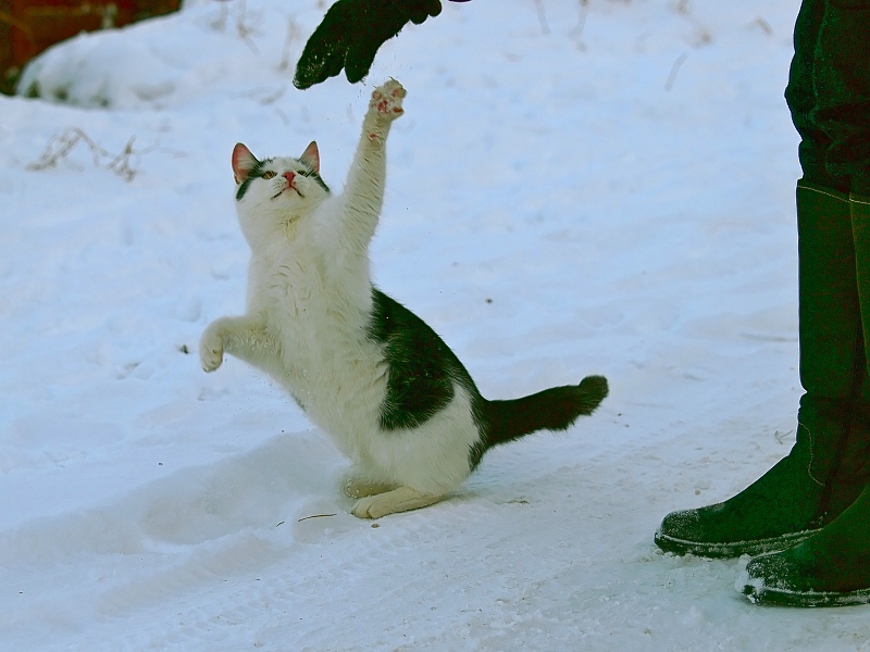 Przybijanie piątki z podwórkowym kotem z okazji Światowego Dnia Kota![]()