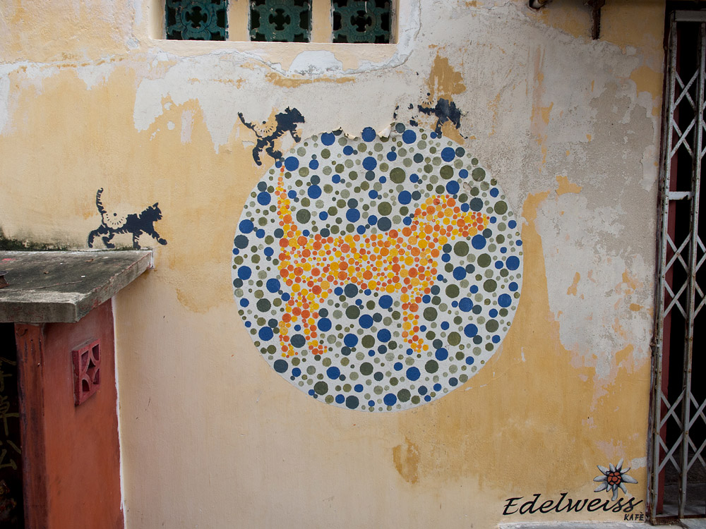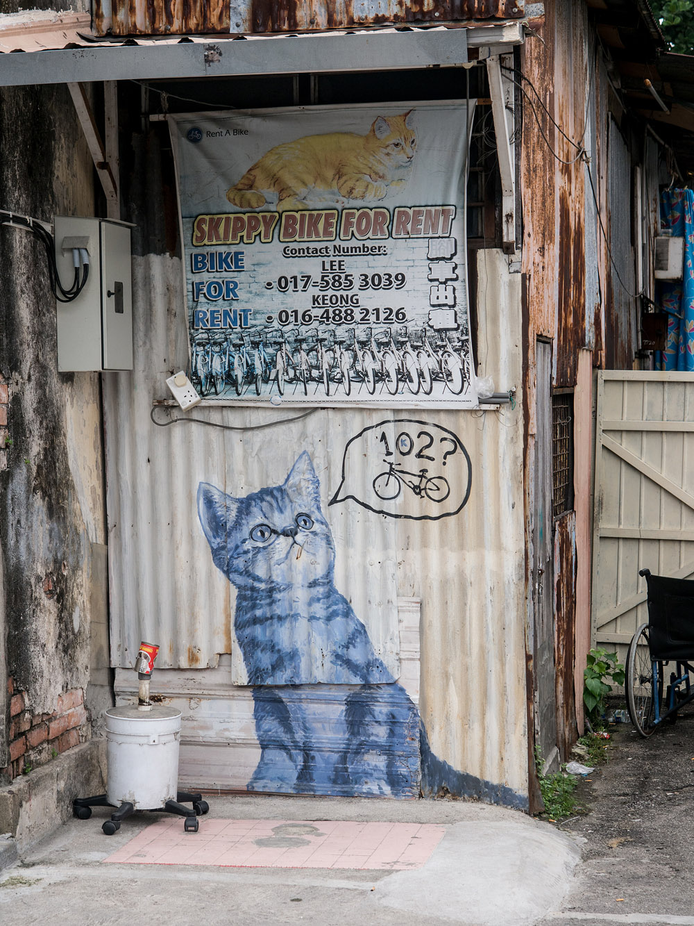 Jak wspominałem, George Town jest też miastem Street Artu. W punkcie informacji turystycznej możemy dostać specjalną mapę miasta ze zaznaczonymi muralami, a najbardziej znane żeby sfotografować bez ludzi czasami trzeba się ustawić w długą kolejkę chętnych do fotografowania. Poniżej kilka z nich.