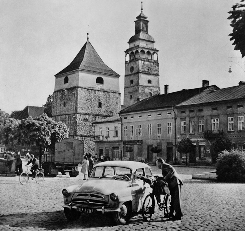 Pierwsze zdjęcie przedstawia hafciarkę z Koniakowa w gminie Istebna. Na drugim widać żywiecki rynek. Zdjęcia zostały wykonane w latach 60 przez mojego dziadka Tadeusza.