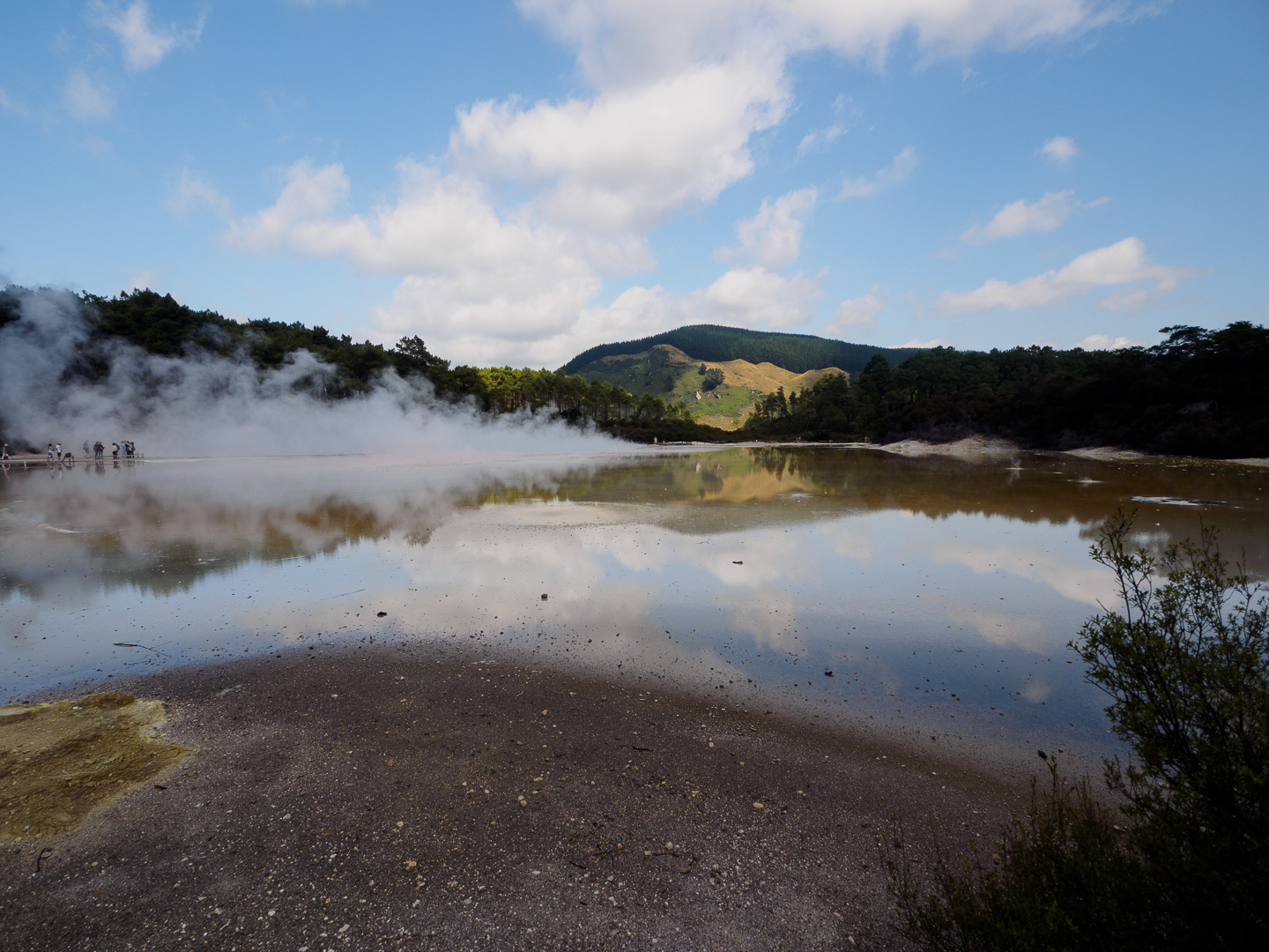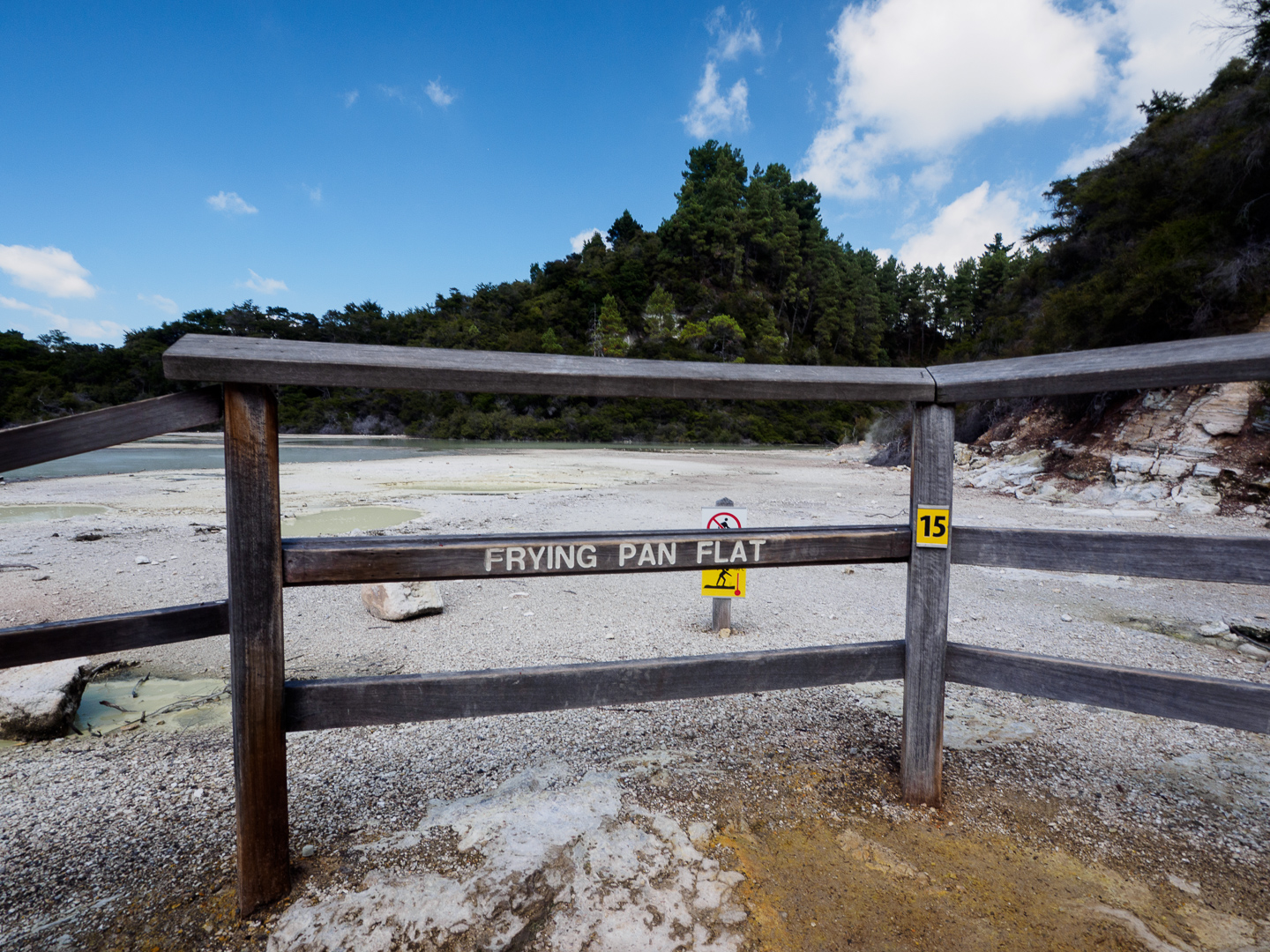 Teraz będa prawdziwe cuda, na czele z bajecznie kolorowym Champagne Pool. Na kolejnej tablicy wyjaśniono m.in, jakie związki odpowiadają za poszczególne kolory (purpurowy to tlenek manganu, czerwony /brązowy to tlenek żelaza a żółty to związki siarki.