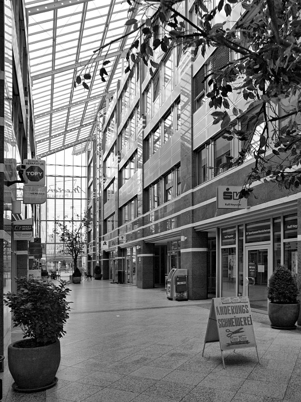 Znalazłem pasaż handlowy, co prawda tuż przed zamknięciem i dlatego nie ma ludzi.