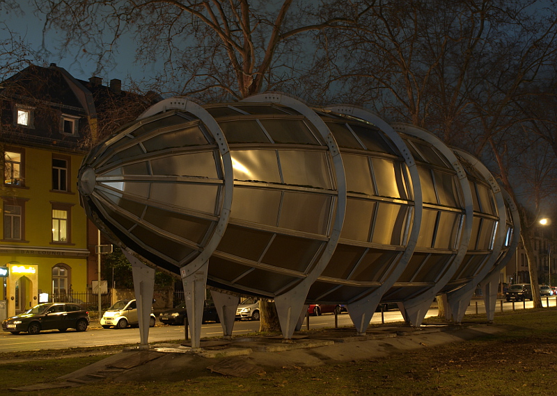 Zeppelin stoi na pasie zieleni, między jezdniami ruchliwej (trzy pasy ruchu w każdym kierunku) ulicy. Za plecami miałem latarnię oświetlającą ten drugi pas.