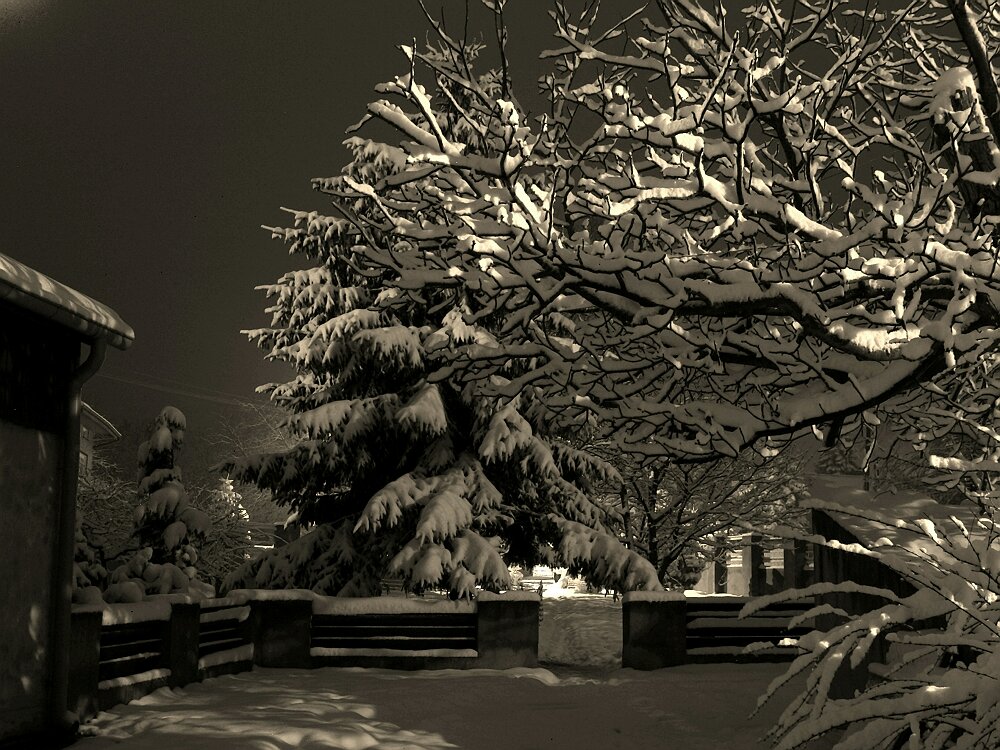 Zrobiłem kilka zdjęć w porze nocnej z długim czasem naświetlania przy padającym śniegu, miałem problem z uchwyceniem ostrości a padające płatki wywoływały wrażenie ziarna (coś w rodzaju subpikseli - w różnych kolorach).