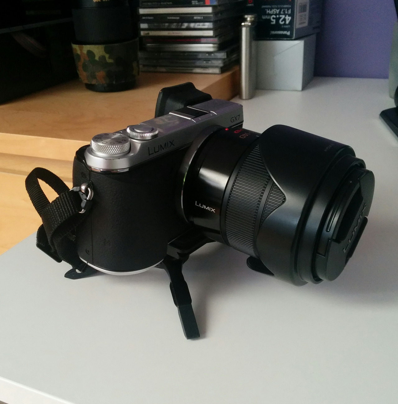 Producent podaje maksymalną dopuszczalną wagę sprzętu na 500g. Nie miałem żadnego problemu z GX7 i kitem, statyw utrzyma pewnie i cięższy obiektyw typu 8-18 ew jasną stałkę f/1.4. Pracowało mi się z nim całkiem przyjemnie a jedyny minus to lekkie odchylenie od pionu o 2-3 stopnie spowodowane ciężarem gripu (zdjecie 5).