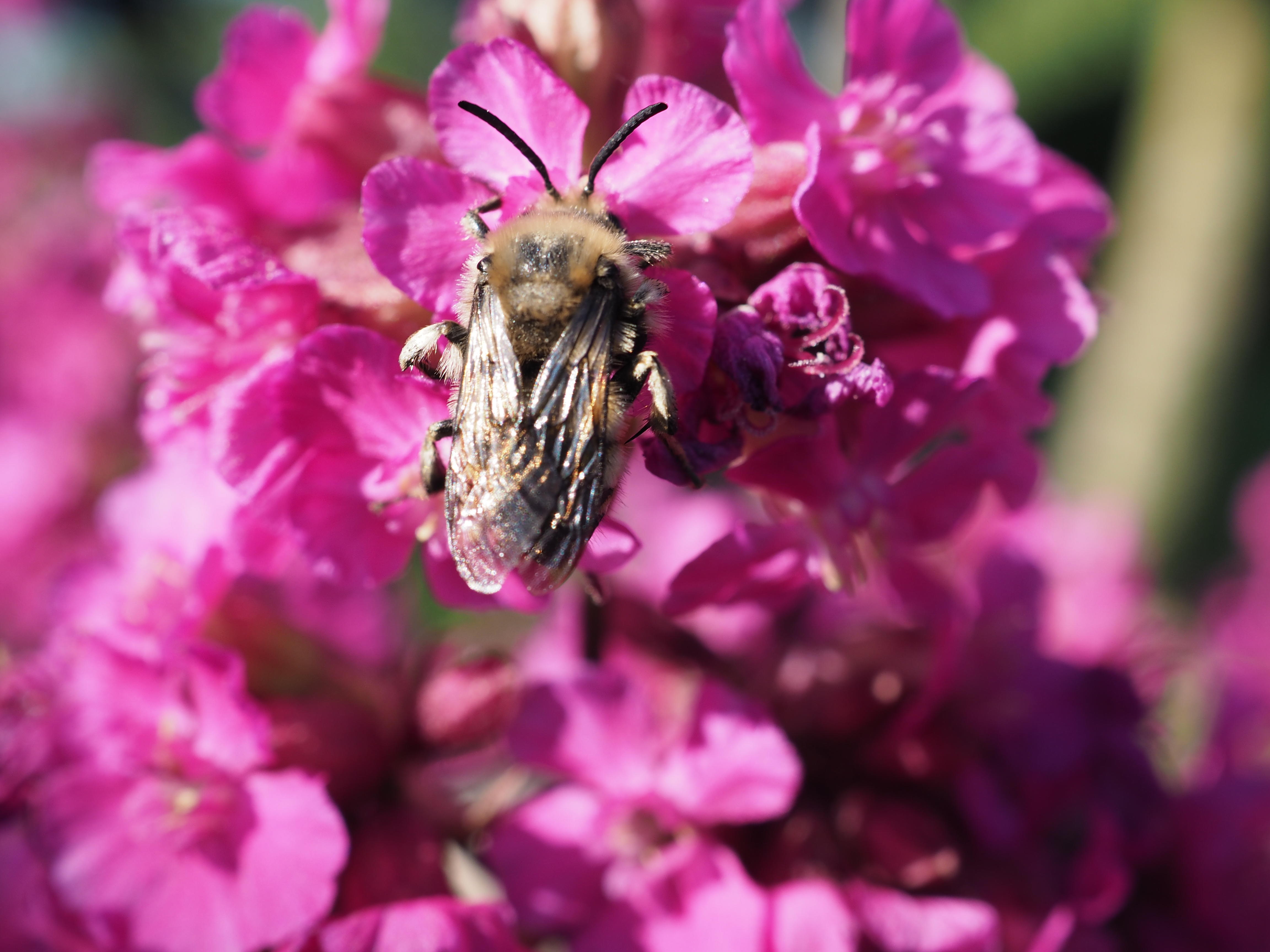 Mój EM-5 lubi nastawić ostrość na tło nawet w zwykłych fotkach - np. grupy ludzi, zdjęcia w pomieszczeniach). AF w makro sprawdza mi się na obiektach dobrze wypełniających kadr, np. motyl. Przy małych obiektach jak ta pszczółka i "bałaganie w tle" lubi się zgubić.....
