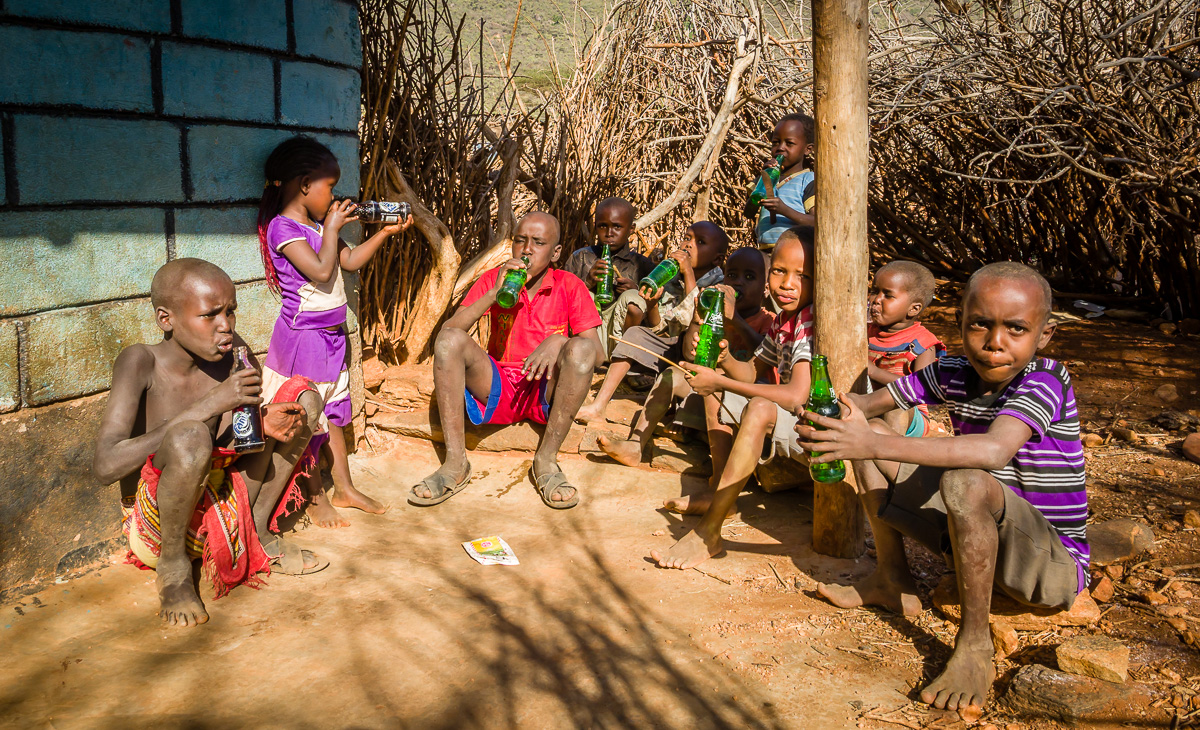 190. Chcieliśmy kupić zbierającym się dzieciakom jakieś słodycze, jednak lokal nie dysponował takimi rarytasami. Na całe szczęście była wszechobecna coca-cola i po chwili każdy dzieciak, który przyszedł do baru dostawał colę, która jednak szybko się skończyła ale był jeszcze sprite i fanta...