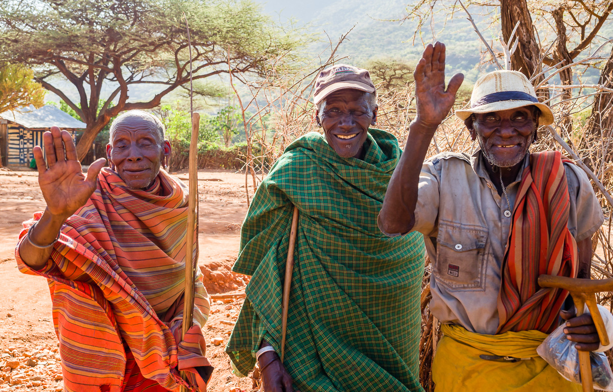 193. Za dzieciakami nadciągnęli starsi mieszkańcy. Ci trzej sympatyczni staruszkowie to członkowie wioskowej starszyzny.
