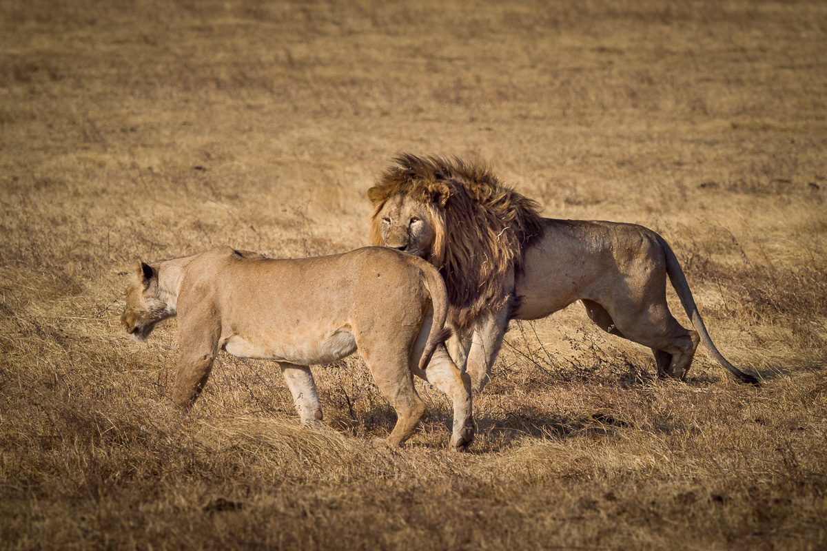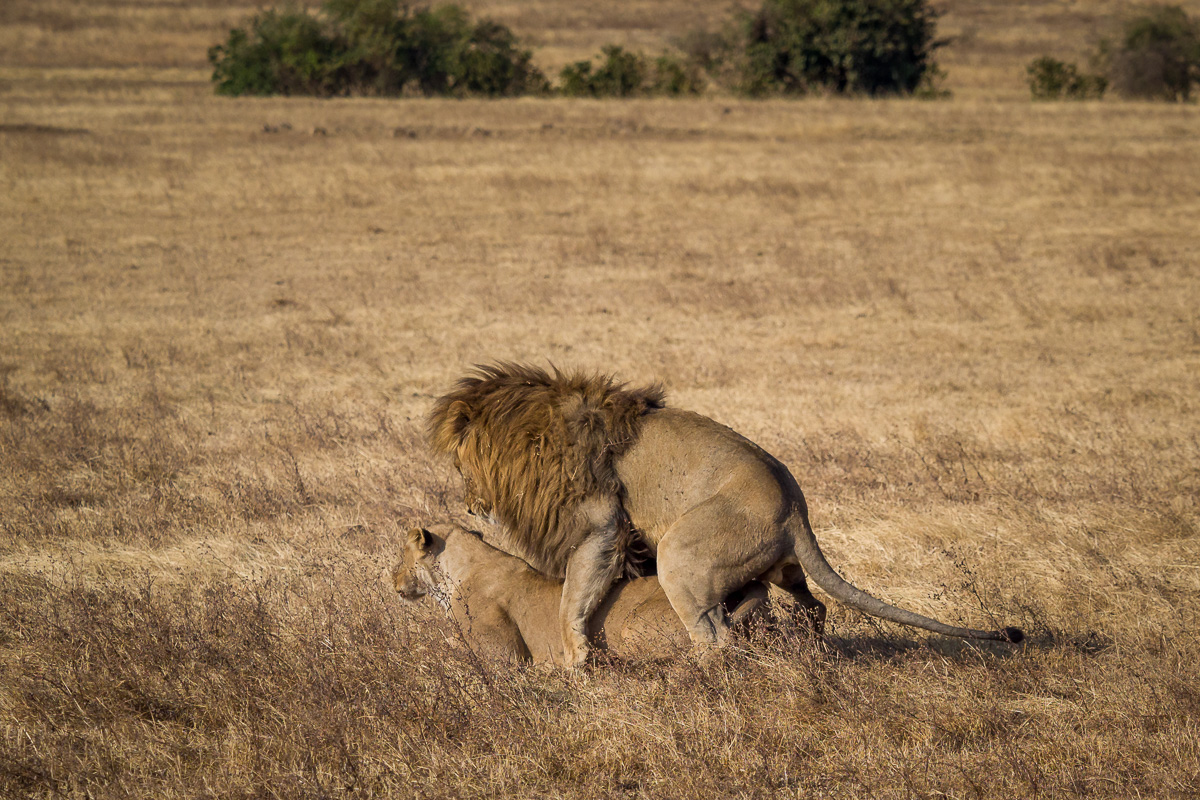 332. Lwica podeszła do samca i zakręciła mu zadkiem przed nosem co od razu zachęciło go do działania.