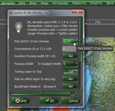 Jak widać z załączników w posiadanym GIMP 2.9.3 z G`MIC 1.7.9 plugin działa