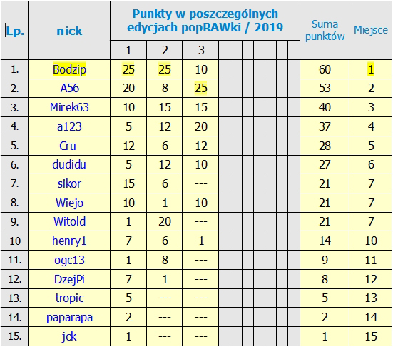 (edycje oznaczone R1/R2/R3 to cykl 3 edycji popRAWek z nagrodą)