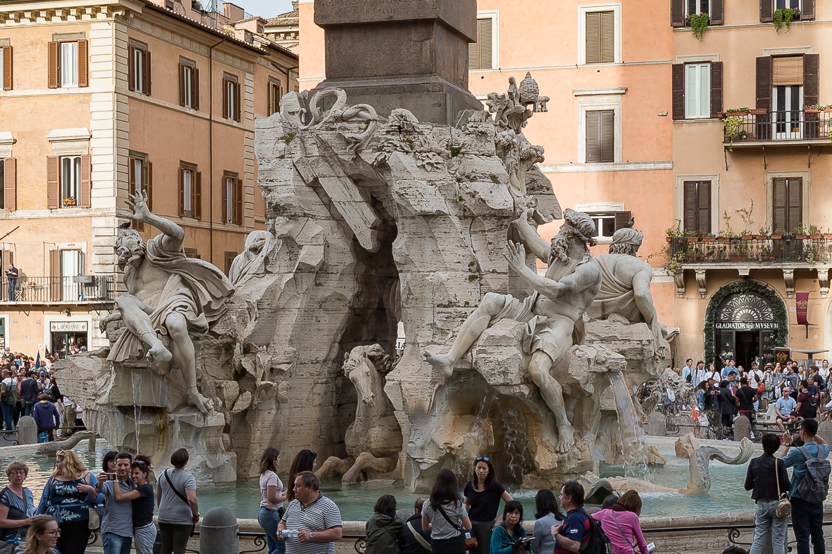 136. Widok z góry. Uliczka na końcu to Via dei Condotti. Przy niej są jakieś szopy typu Prada, Gucci itp. Może dlatego tyle luda ... nie wiem ....