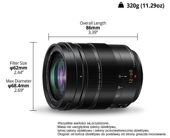 * Standardowe wyposażenie Pokrywka obiektywu, osłona mocowania obiektywu, osłona przeciwsłoneczna do obiektywu, pokrowiec obiektywuopis ze strony prod.: Opis na stronie PANASONICS POLSKA: https://www.panasonic.com/pl/consume...h-es12060.html Specyfikacje: WAŻNIEJSZE WĄTKI NA OLYMPUSCLUB: PANASONIC LEICA DG H-ES12060 TESTY/OPINIE/RECENZJE: