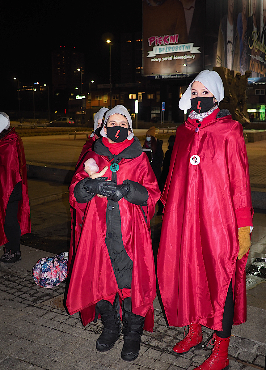 Podczas tego protestu kobiety przebrały się w taki strój jak " podręczne " z powieści.