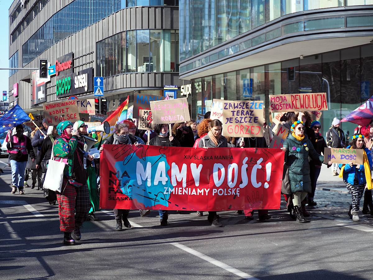 Gdy Śląska Manifa przechodziła ulicami miasta, jakaś mała grupa religijna zorganizowała taką małą kontrmanifestację.