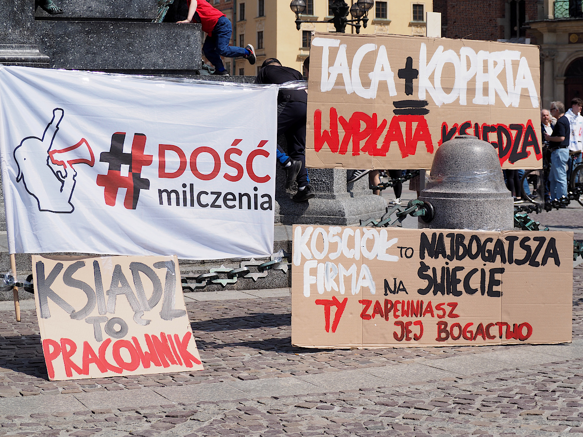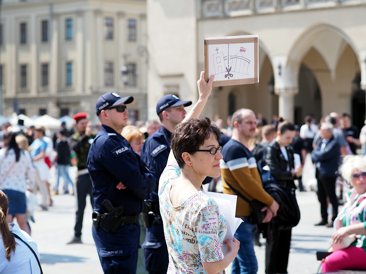 Grupa obywatelska " Dość Milczenia - Stop Klerykalizacji Polski " Miała dziś na rynku w Krakowie mały protest.