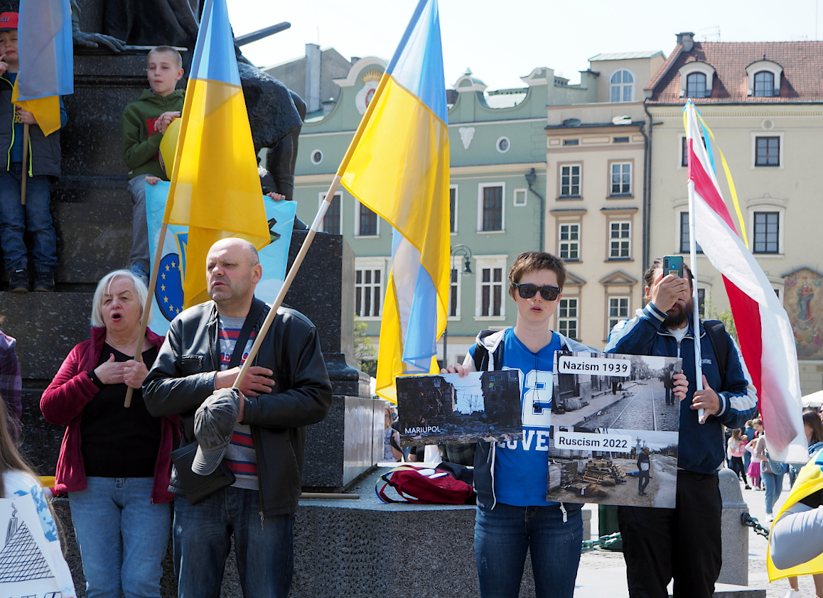 Protest przeciw wojnie i podziękowania dla nas polaków za wsparcie.