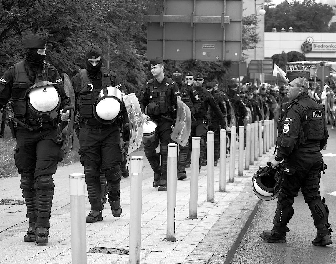 Po stronie manifestantów są panowie przebrani za panie, po stronie policji są panie przebrane za facetów, fajnie się to uzupełnia...![]()