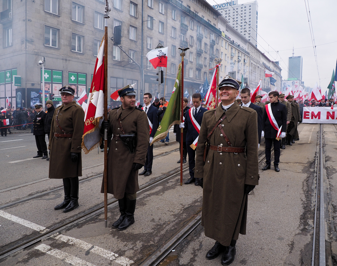 Dzięki fajnym, solidnym fotkom, można zobaczyć, że na pochodzie niepodległościowym nie ma żadnej radości, żadnego optymizmu, żadnej fantazji, sama powaga, ostrzegawcze hasła, race nie wiadomo po co i dlaczego, poczty sztandarowe, czarne ubiory, białe rękawiczki. Patriotyzm zrytualizowany.