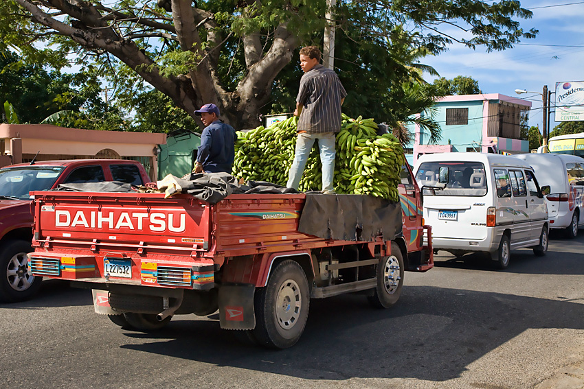 Za streetu nie mam zbyt wielu do pokazania. Jechaliśmy do Santo Domingo wynajętym vanem z kierowcą ledwo- ledwo rozmawiającym po angielsku. Był uparty jak koń cyrkowy do zrobienia typowej trasy w drodze do stolicy. Nie rozumiał naszej (mojej) potrzeby zobaczenia życia zwykłych ludzi. Uparcie podwoził nas pod kościoły, muzea czy sklepy- oczywiscie zaprzyjaźnionych właścicieli, którzy z pewnością odpowiednio mu za to dziękowali. Towarzyszy podróży miałam bardzo dzielnych i znosili moje jęki i okrzyki "jezzzu! jakie tu by było zdjecie". Wielkie lusterko przy oknie pasażera uniemożliwiało mi robienie zdjęć, a kierowca uporczywie powtarzał, że nie wolno tu stawać. Rzeczywiście droga była asfaltowa ale wąska - tarasowalibyśmy przejazd innym kierowcom.