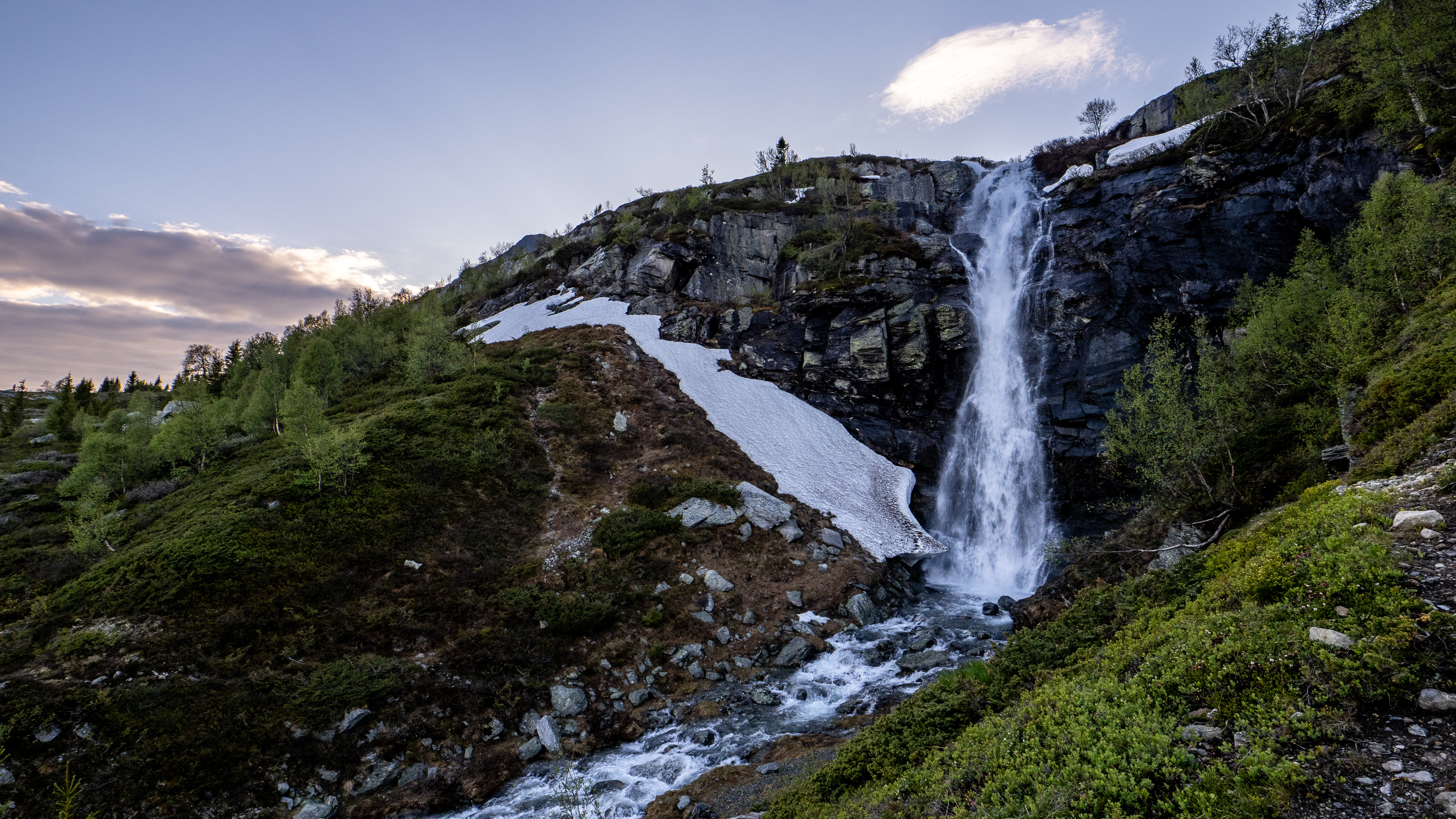 Hydnefossen w całej okazałości. Fotki fajne, ale.....pierwsze odstaje z powodu radioaktywnej trawy i turkusowych drzew na stokach Veslehorn.
