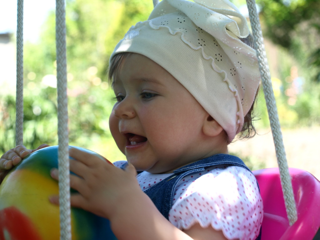 Dodam tylko, że niestety moja córcia jest baaaardzo ruchliwa i na każdej fotce się ruszała, ale z drugiej strony - dlaczego chustka jest ostra ??
