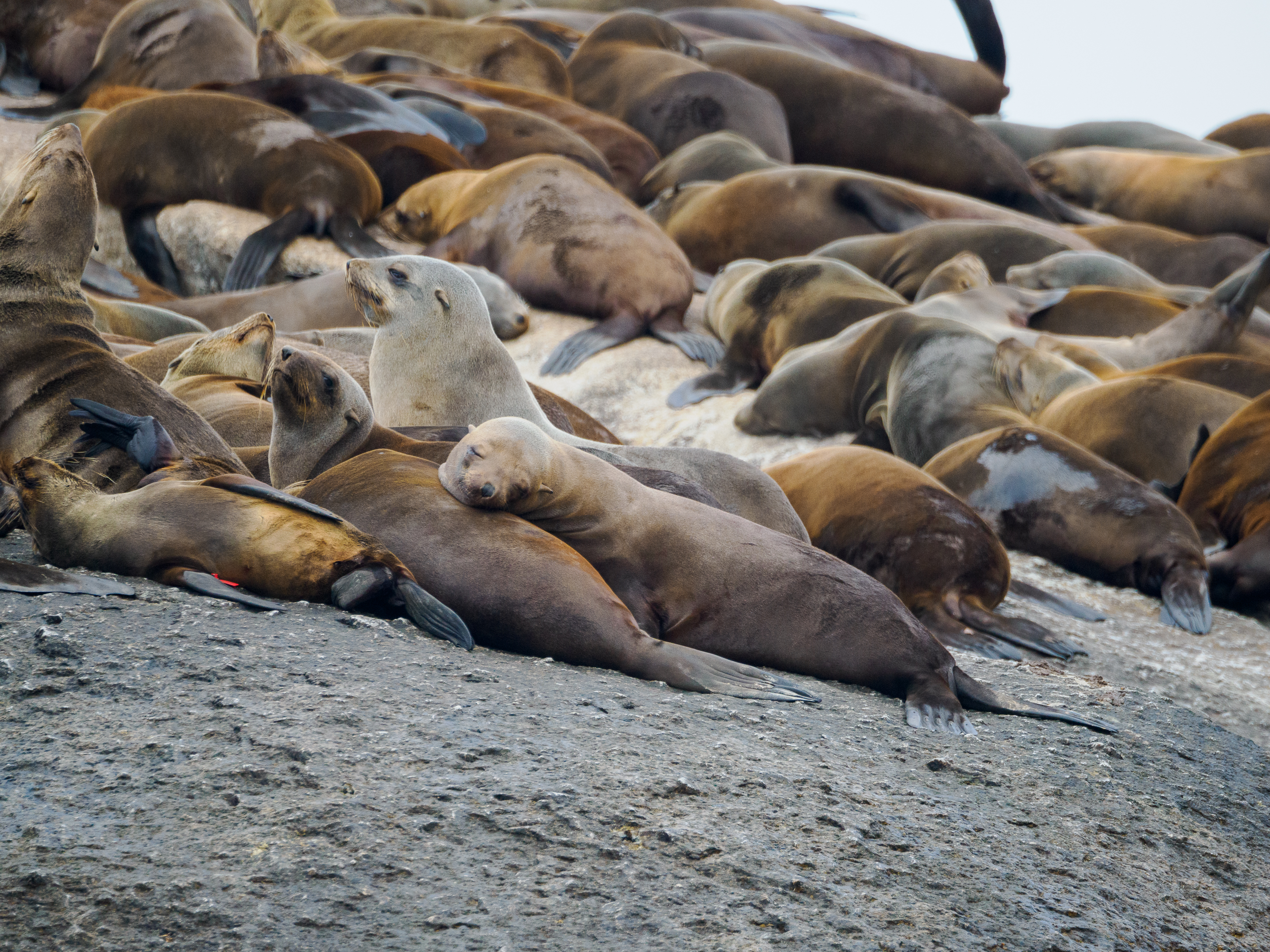 Kolejny dzień rozpoczęliśmy rejsem w kierunku kolonii fok. Foki były, niestety było też bure zachmurzenie, bure morze bure foki i zdjęcia są mało udane.