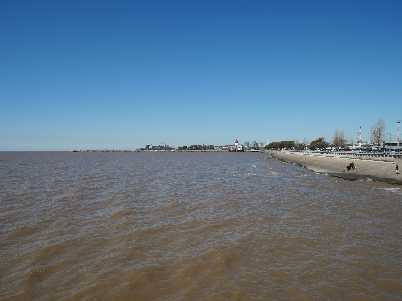 Z lewej fragment wspomnianej alei, na której zdarzył się wypadek, z prawej Río de la Plata. Paskudny kolor wody, bierze się z masy mułu, który niosą rzeki Parana i Urugwaj, wpadając do Atlantyku.